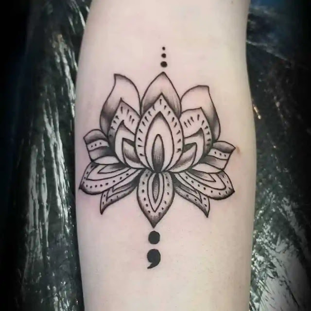 Floral semicolon tattoos are a beautiful and meaningful way to express personal resilience and hope. The semicolon symbol, often associated with mental health awareness and continuing one's story, combines delicate floral designs to add a touch of nature's beauty, growth and renewal. Each flower choice adds symbolism—roses for love, lavender for calm, and daisies for innocence—allowing individuals to personalize the tattoo to reflect their unique journey.